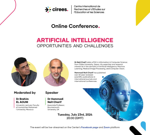 Bycirees-int.org10 novembre 2024The CIREES Center organizes an online conference on the theme « ARTIFICIAL INTELLIGENCE, OPPORTUNITIES AND CHALLENGES » with Dr. Hammadi Nait Charif (Bournemouth University, UK)...