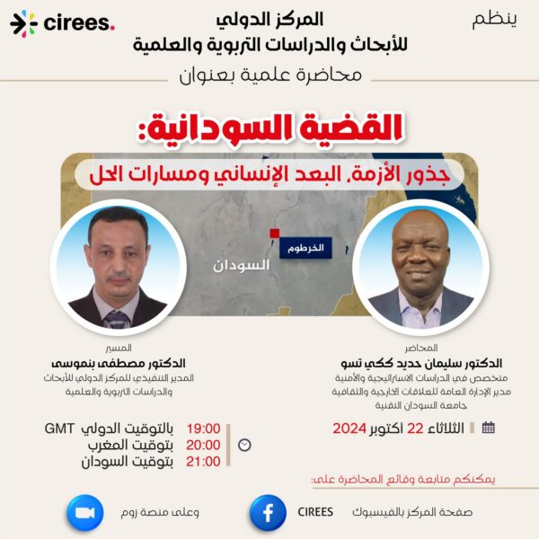 نظم المركز الدولي للدراسات والأبحاث التربوية والعلمية يوم الثلاثاء 22/10/2024م محاضرة فكرية بعنوان « القضية السودانية جذور الأزمة البعد الإنساني ومسارات الحل »، قام...